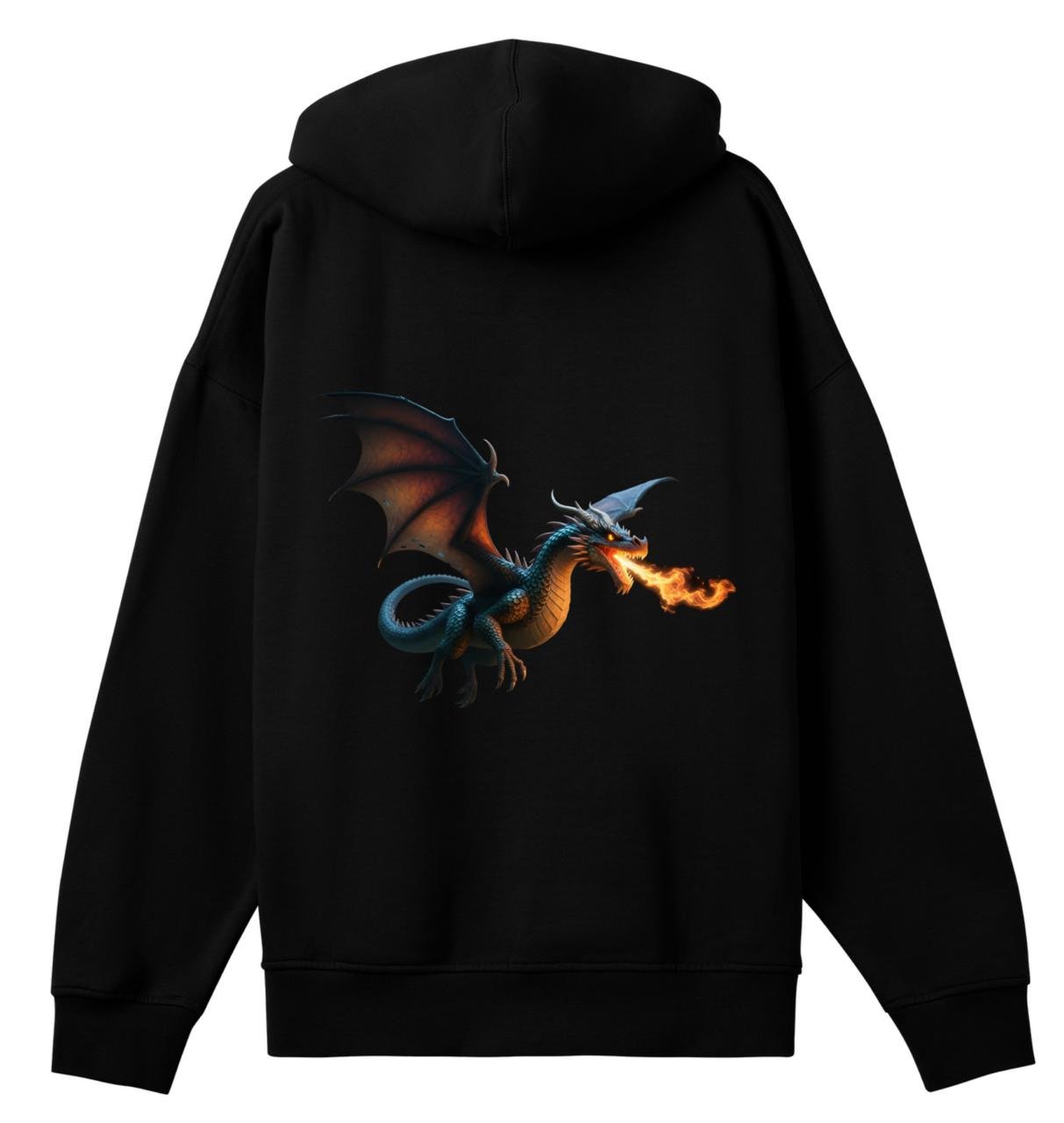 Print: “DRAGON’S LOVE IS ETERNAL. FIERCE. UNDENTABLE.” and a stunning full-back dragon illustration. Cozy, durable, and designed for a quiet impact.